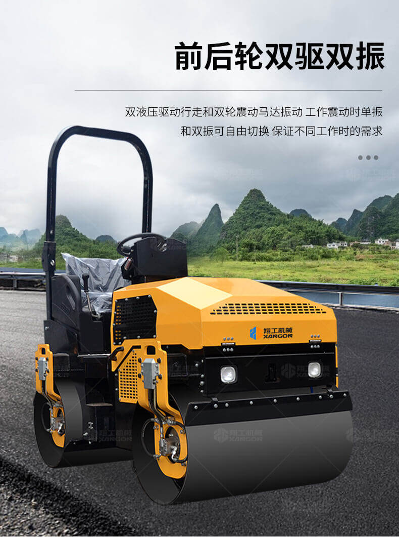 進(jìn)口液壓系統(tǒng),雙驅(qū)雙振,前后輪可單獨(dú)調(diào)節(jié)振動(dòng),亦可同時(shí)振動(dòng)。