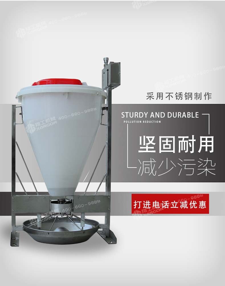 智能豬料槽采用不銹鋼原料和大容積的滾塑料筒組成,鈍化實際,美觀、耐用、實用是它的主要特點。內(nèi)部控制的元器件采用進口數(shù)字化非接觸性電子元器件,壽命比普通的高10倍以上, 機械壽命進一步提升、減少維護的煩惱。