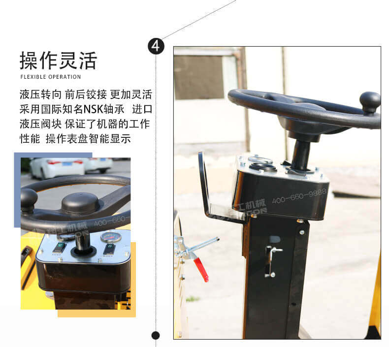 ·發(fā)動(dòng)機(jī)電啟動(dòng),機(jī)器采用液壓振動(dòng),操作更加輕松方便;