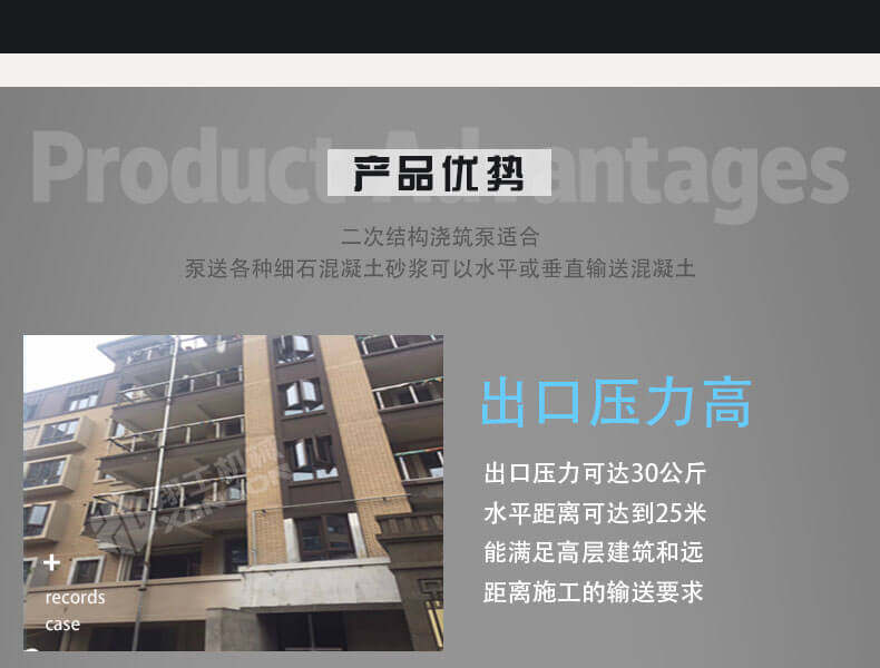 此設(shè)備是針對二次構(gòu)造專門研發(fā)的細(xì)石混凝土輸送設(shè)備,體積小,重量輕,移動方便,是狹窄施工環(huán)境的選擇;能夠保證我們合理施工,大大減輕了我們的工作量。