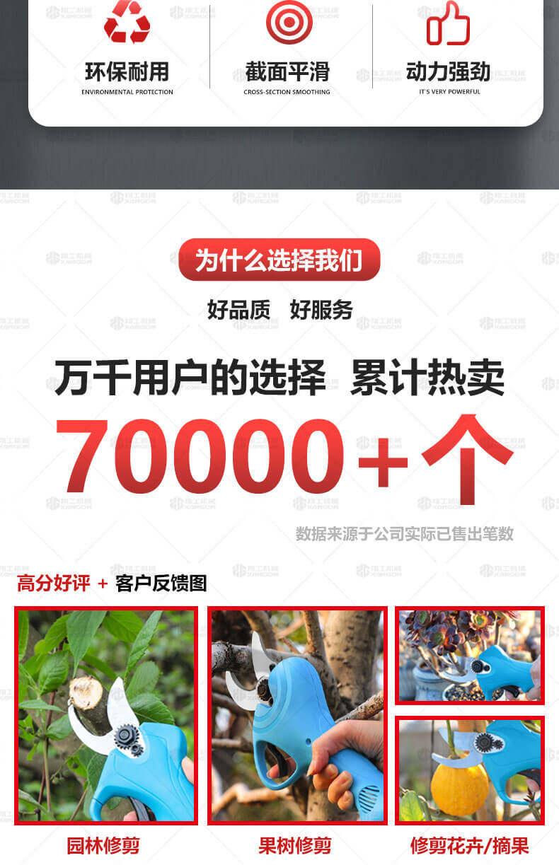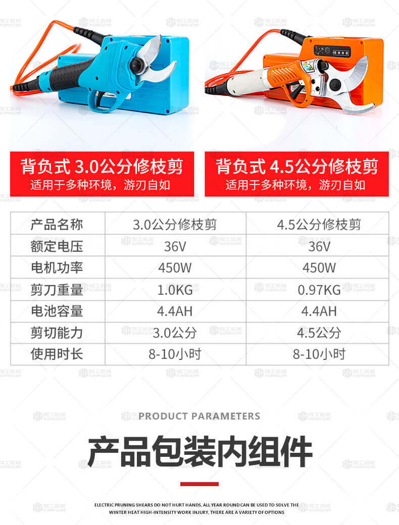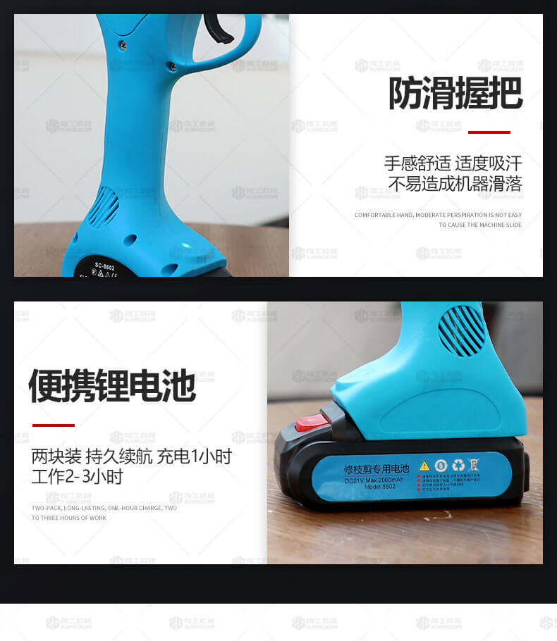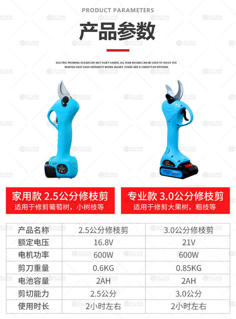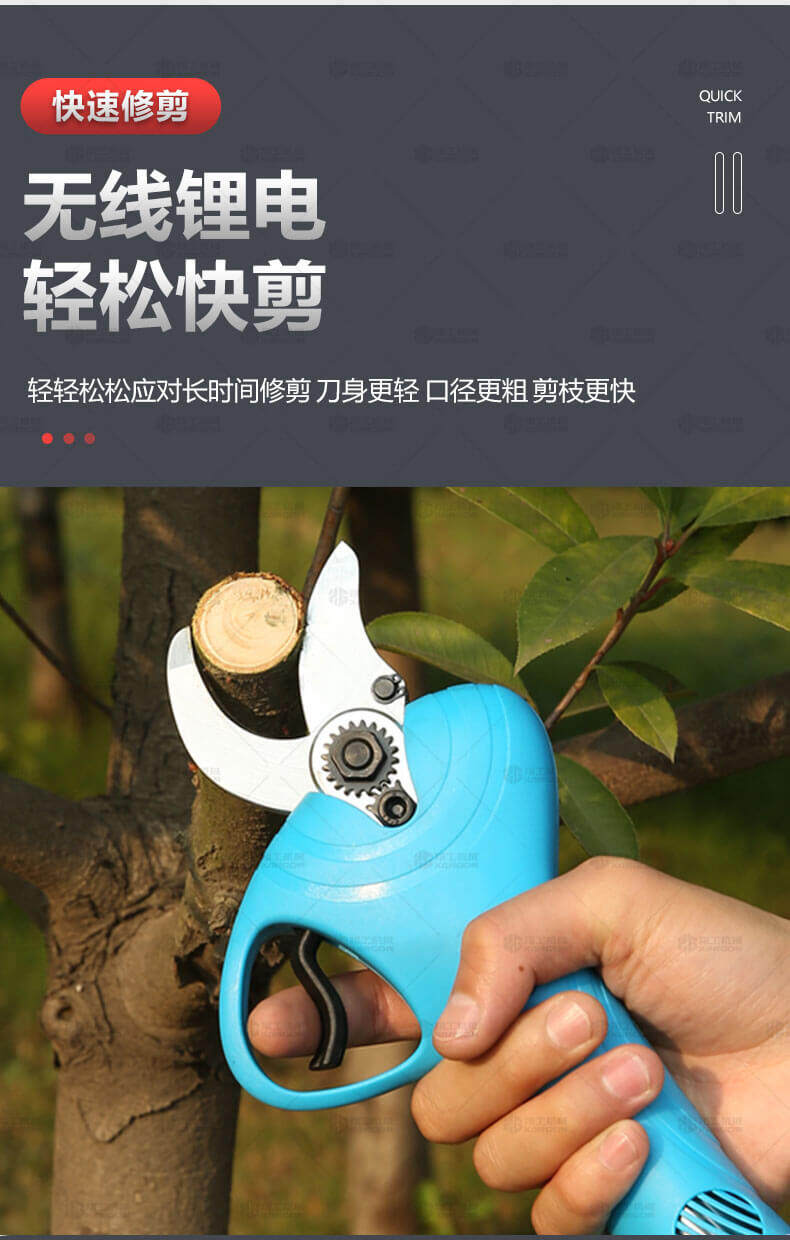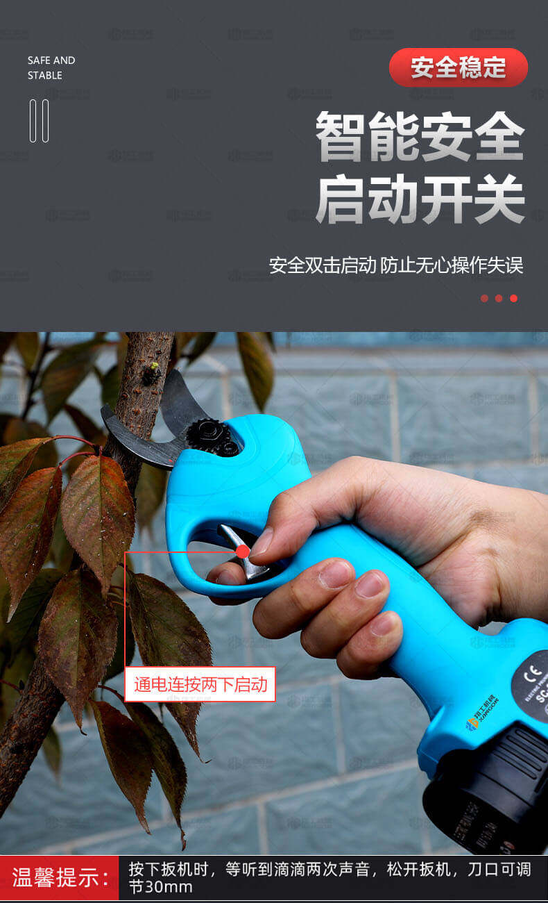 電動修枝剪的使用大大提高了植物的修剪效率,降低了修剪工的工作強度,大受人們的喜愛。滿足了當(dāng)今社會簡單輕巧的工作方式,一把小小的電動修枝剪不傷手,一年四季均可以使用,解決寒冬酷暑高強度工作的傷害,電動修枝剪有多種選擇,這是一款無線的電動修枝剪,使用更加方便。