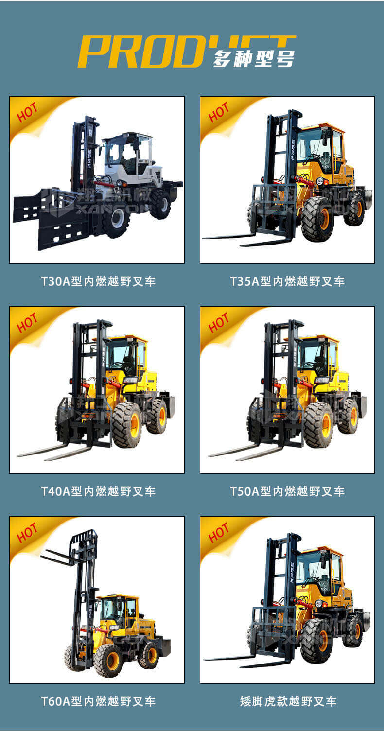3.普通叉車只能在平整的路面上作業(yè),而越野叉車既可以在普通路面上作業(yè),還可以在山路泥路崎嶇道路作業(yè),輪胎抓地力強,不打滑。