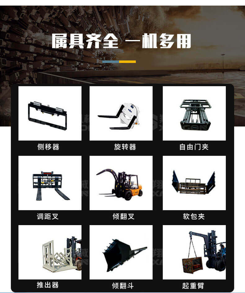 5.越野叉車發(fā)動機功率大,采用全輪驅(qū)動和越野輪胎。