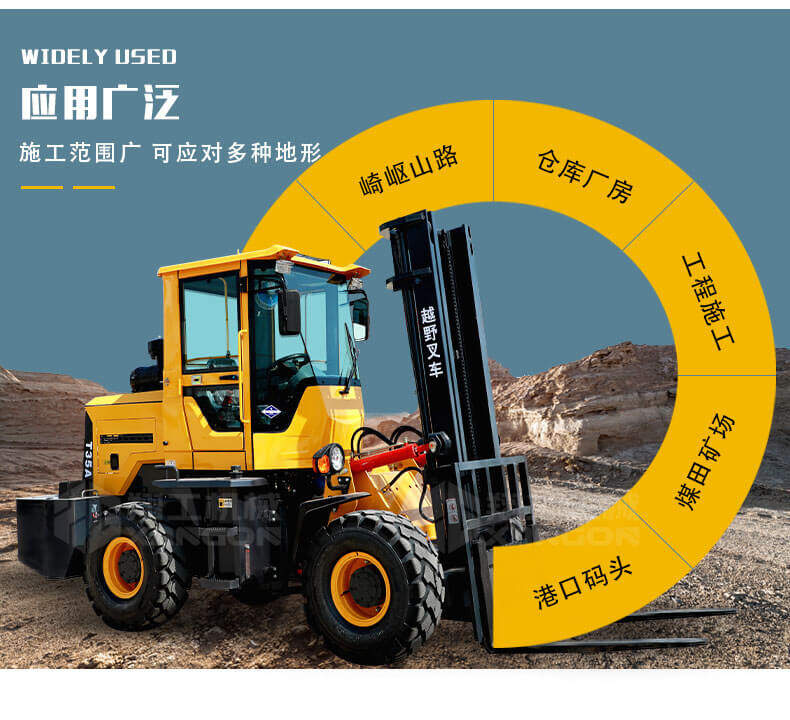 矮腳虎款越野叉車是四驅(qū)越野叉車中常見的一款,其具有良好的機動性、越野性可靠性,可以在坡地和不平地面上進行貨物裝、卸、堆垛及搬運作業(yè),主要用來轉(zhuǎn)運石料、設(shè)備、貨物、城市垃圾箱以及集裝物料等.多用于道路修筑、城市建設(shè)、環(huán)境衛(wèi)生、石料場、中小型土木工程、車站、碼頭、貨場、倉庫等地方。