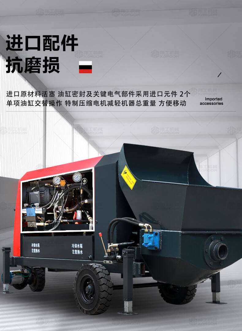 這款7.5KW型澆筑泵帶有自動攪拌功能,性能可靠,設(shè)備各個結(jié)構(gòu)制造科學(xué),電機功率大、性能穩(wěn)定、施工效率高等優(yōu)勢,使用電動澆筑泵大大提高了施工效率,降低勞動強度,節(jié)約人工,被廣泛應(yīng)用。是工程施工的好幫手。