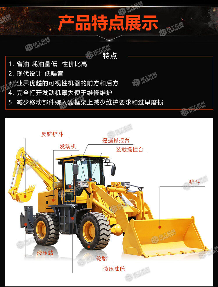 挖掘裝載機(jī)主要用于城市和農(nóng)村的公路建設(shè)及養(yǎng)護(hù)、電纜鋪設(shè)、電力和機(jī)場(chǎng)工程、市政建設(shè)、農(nóng)田水利建設(shè)、農(nóng)村住宅建設(shè)、開(kāi)山取石以及各種小型建筑隊(duì)所從事的各種建筑施工工程。