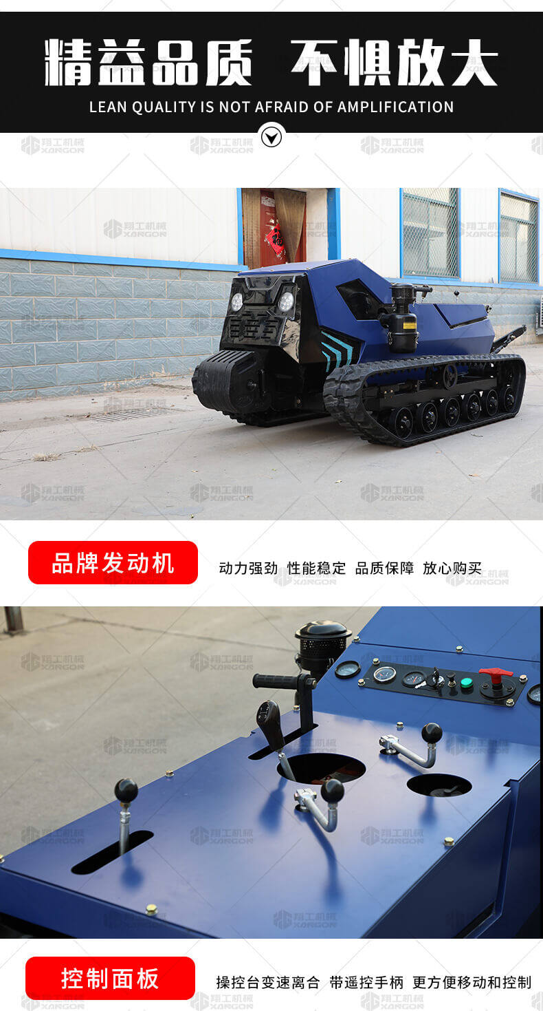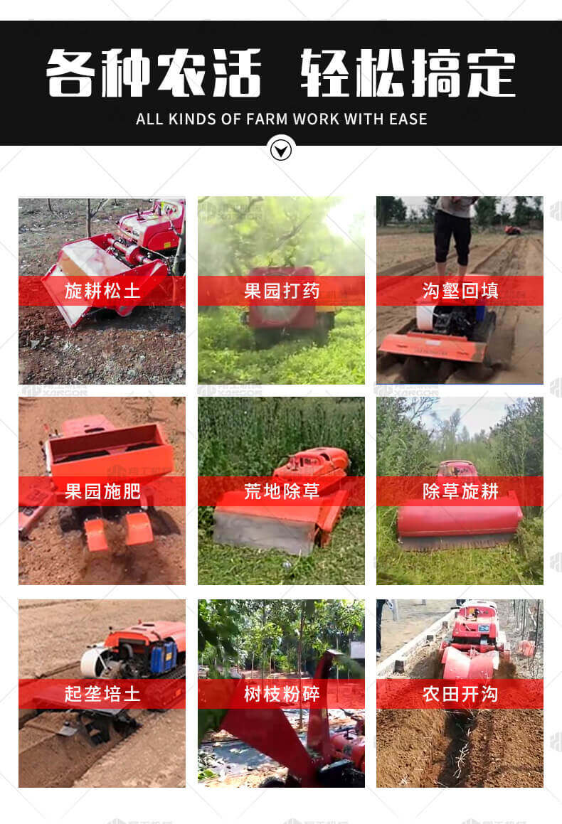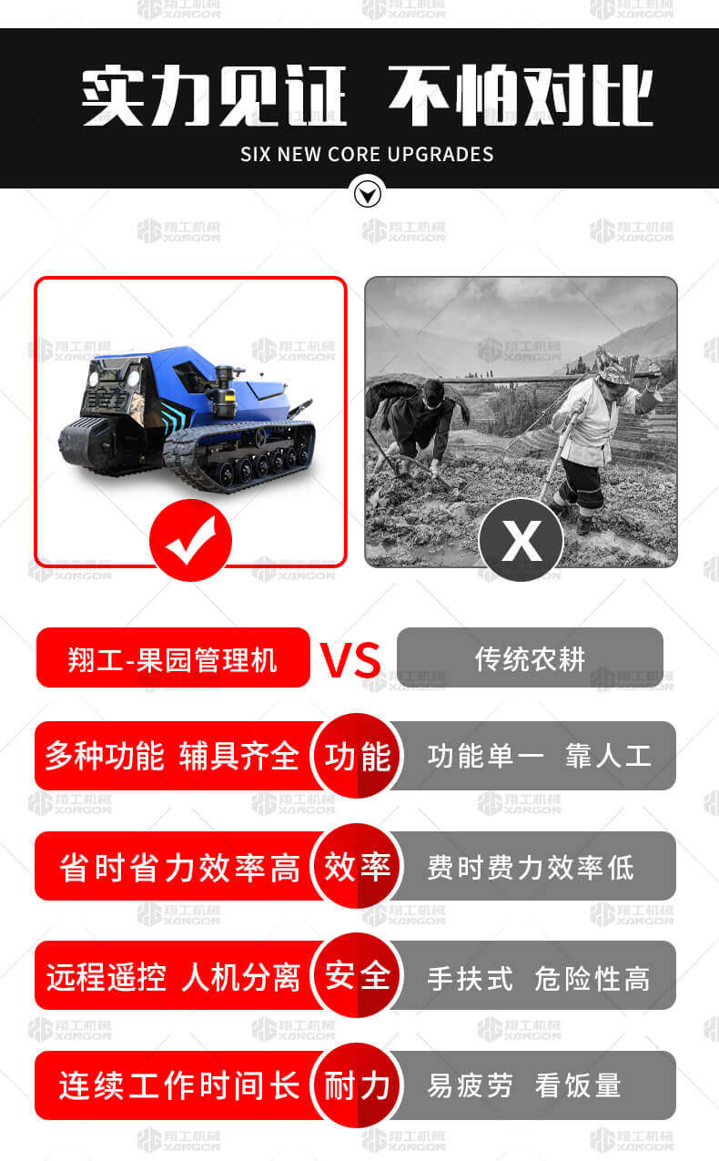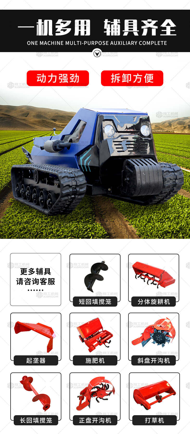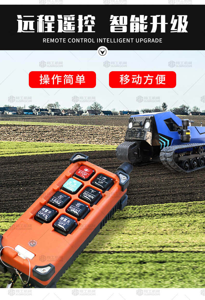 本產(chǎn)品采用履帶式驅(qū)動(dòng)設(shè)計(jì),穩(wěn)定性和爬坡能力較強(qiáng),適應(yīng)丘陵山地平原各種地形,機(jī)型小功率大,適應(yīng)各種行距的果樹,大棚,園林。產(chǎn)品動(dòng)力強(qiáng)勁,結(jié)實(shí)耐用,性能優(yōu)越,安全放心,遠(yuǎn)程操控,省心省力。