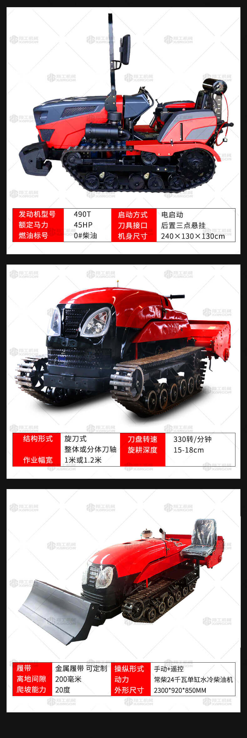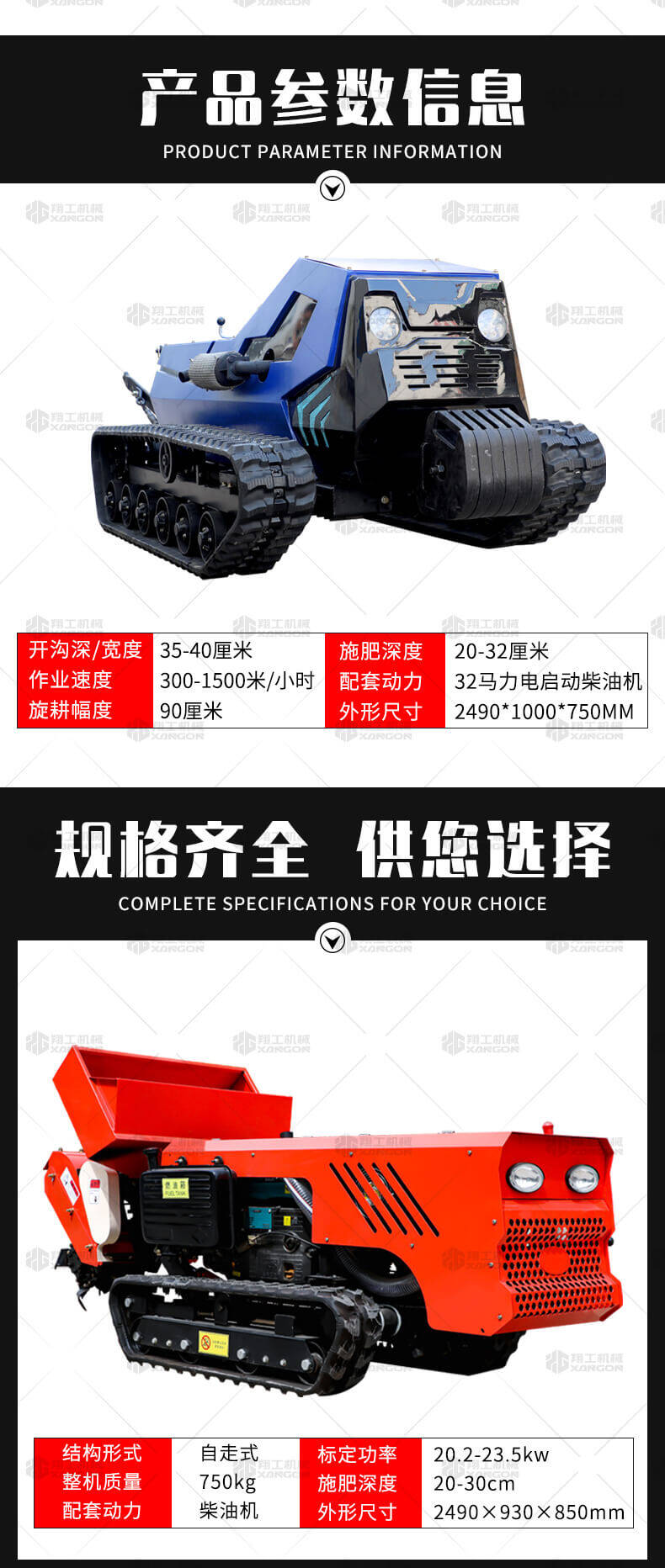 履帶式開溝施肥機(jī)安裝上不同的配件可以進(jìn)行單獨(dú)旋耕、回填、單獨(dú)開溝、施肥、也可混合搭配使用。