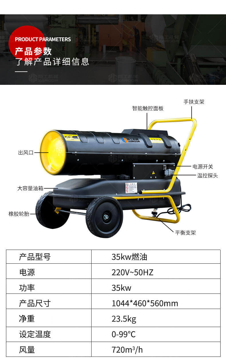 35KW燃油暖風(fēng)機(jī)適合在工廠車間,物資倉庫,防潮烘干,局部采暖 建筑工地,道路橋梁,水泥養(yǎng)護(hù),野外采暖 石油鉆井,煤炭礦區(qū),除冰防凍,設(shè)備保溫 鐵路機(jī)場,游艇船舶,油漆干燥等等。