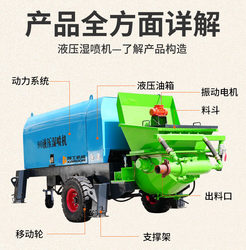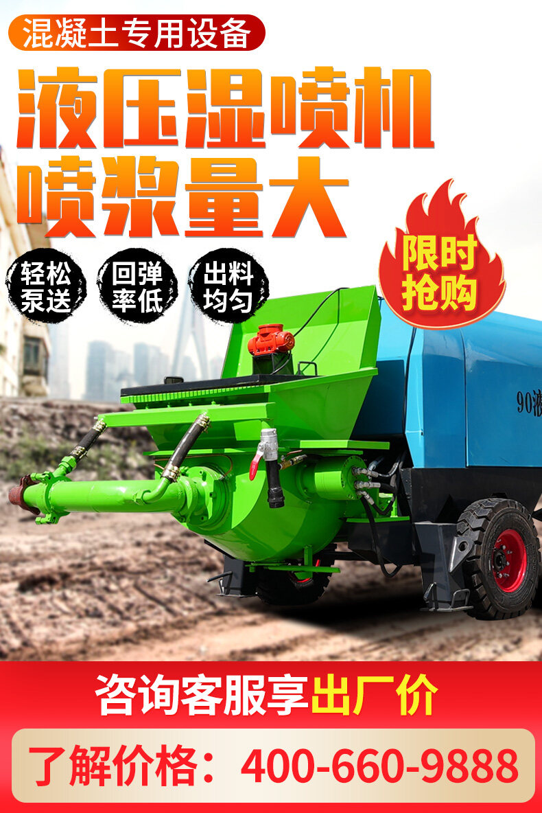 這款混凝土濕噴機主要用于混凝土的噴濕,可用于噴漿、充填、注漿、泵送等工程施工。