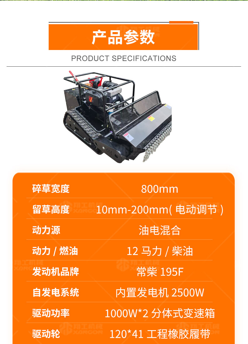 主動(dòng)型800遙控碎草機(jī)是一款高效園林處理裝備。它采用強(qiáng)勁動(dòng)力與重型刀片設(shè)計(jì),能輕松粉碎各類園林垃圾。先進(jìn)的遙控操作技術(shù)提供遠(yuǎn)距離安全作業(yè)能力,極大地提升了工作效率并降低了勞動(dòng)強(qiáng)度。該機(jī)粉碎效果好,碎屑可用于生態(tài)還肥,是實(shí)現(xiàn)園林廢棄物循環(huán)利用的理想選擇。