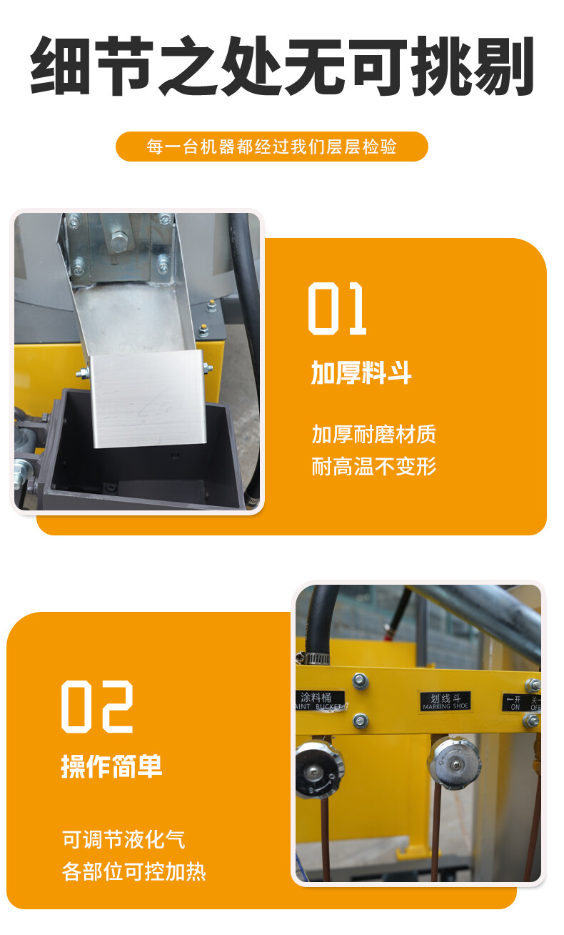 電動劃線機是一款用于路面標線的專業(yè)設備。采用環(huán)保蓄電池驅動,手持或手推操作靈活便捷。通過壓力噴漆或熱熔方式,可高效繪制車道線、停車位等各類道路標線,線條標準清晰、持久醒目。適用于小區(qū)、停車場、廠區(qū)等場景,顯著提升施工效率與質量。